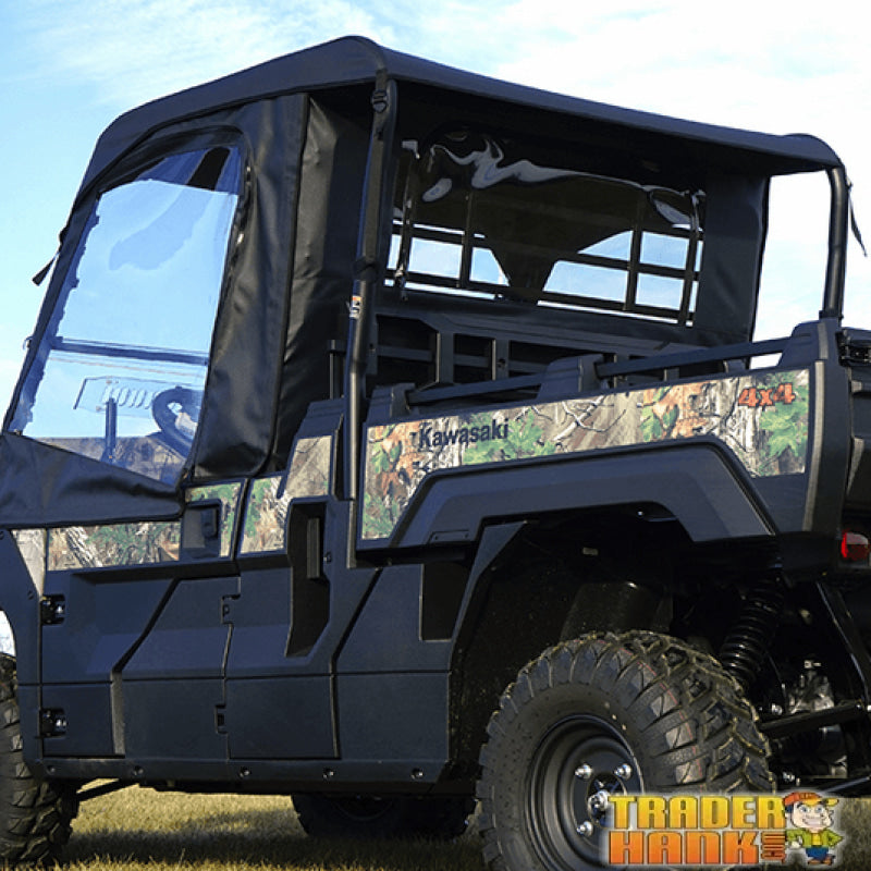 Kawasaki Mule Hard Enclosures offer excellent protection but they are much more expensive. With the increased price you do get some great features. Hinged doors that will open and close just like your truck doors and generally a DOT certified glass front windshield. Most Hard Cab Enclosures available for the Yamaha Viking are what we call an "all or nothing" application. In other words, in most cases, your existing accessories such as a windshield or a top will not work with the Hard Enclosure. Keep this in mind when shopping and if you have any questions please contact us on our Live Chat below or toll-free at the number listed at the top of the page.