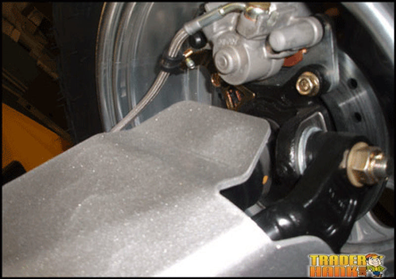 Includes: Full frame skid plate set with floorboard protection, front A-Arm/CV Boot Guards, & stainless steel water bottle Constructed with 3/16" 5052 H-32 Aluminum. All mounting hardware included.