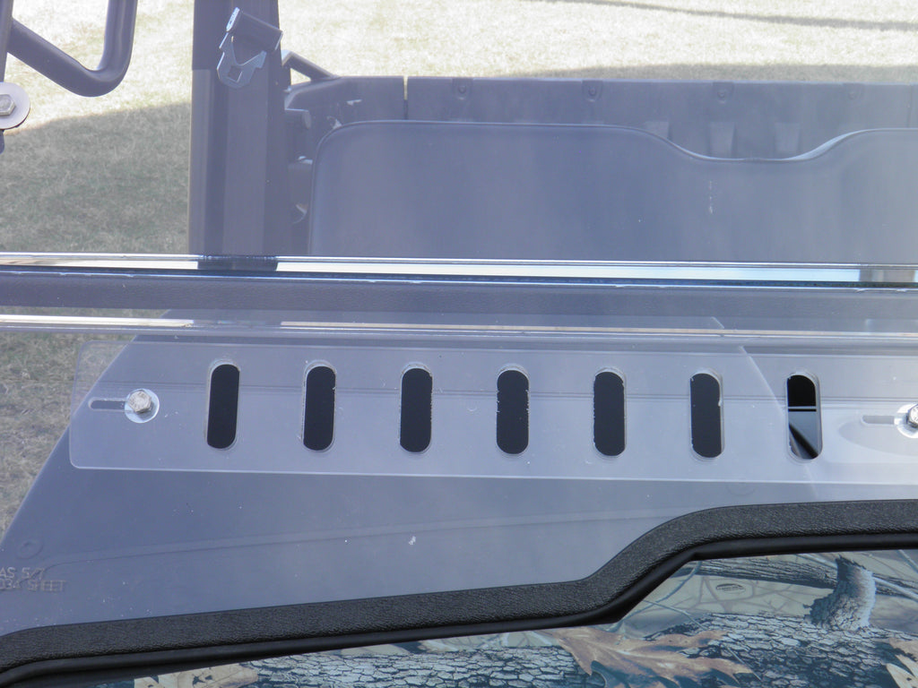 - VENTS-Add vents to your windshield for air flow when needed. ‚ A set of vents are installed in front of the driver and passenger. ‚ The vents open and close by simply sliding the cover side-to-side.
