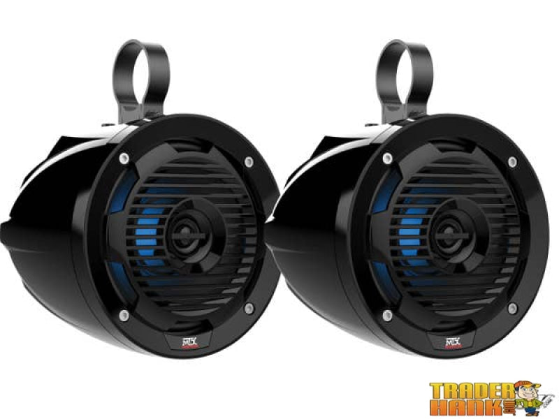 If you already have a stereo system installed in your machine (or plan to get one) and are looking for a way to kick it up a notch, why not add a pair of MTX MUD65PL UTV Speakers with LED Lights? These compact pod speakers secure to nearly any vehicle’s cage and deliver exceptional sound, so you can take the party with you wherever you ride. They’re durable, weatherproof, and stylish.