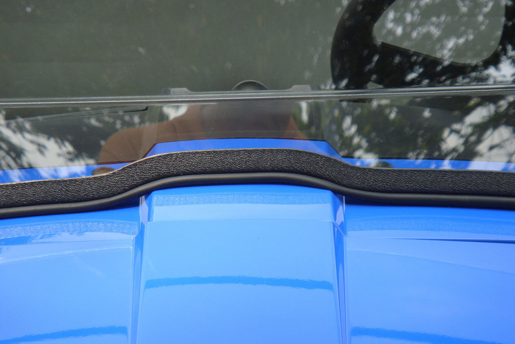 - AUTOMOTIVE TRIM-The bottom of the lower windshield section has a flexible PVC edge trim installed. ‚ The trim on the bottom of the lower section includes a flexible bubble to better seal any gaps between the windshield and hood line. ‚ The trim along the hood line is standard in all windshield models.