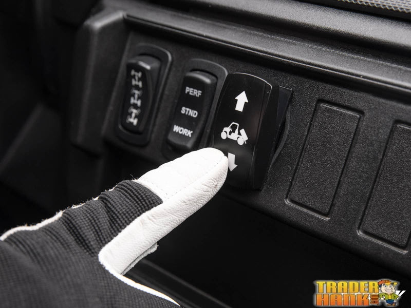 The Perfect Power Dump BedSave your back and make work easier the next time you need to unload your haul. Install SuperATV's Polaris Ranger 1000 Electric Dump Bed Kit. It swaps out your stock gas struts for a powerful electronic actuator you operate from your cab. It's capable of lifting all 1000 pounds your cargo bed is rated for.