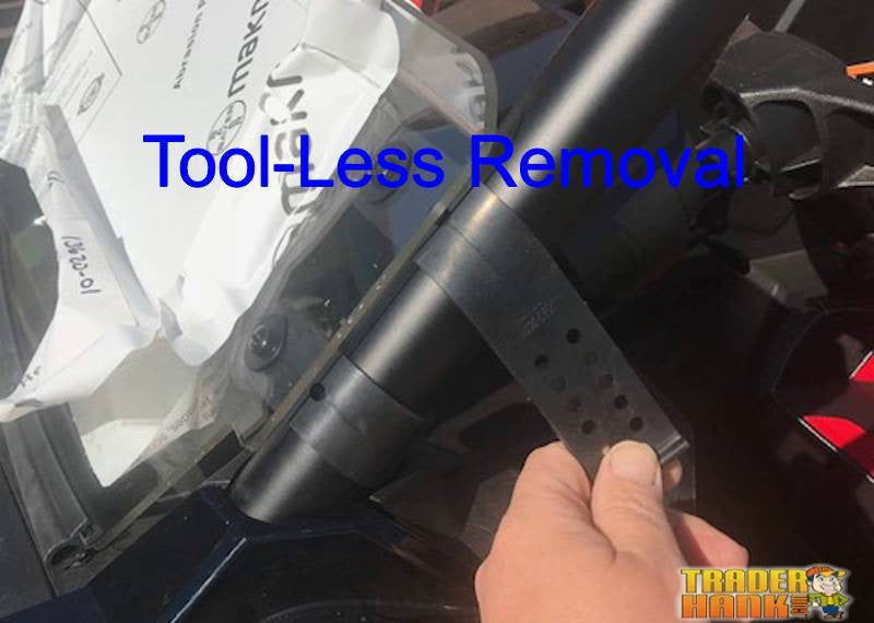 Protect yourself from wind, rain, snow and mud with this hard-coated half windshield. It is hard coated on both sides. Made from polycarbonate making it virtually un-breakable under normal use and may be the last windshield you ever buy. The patent-pending rubber fast straps make tool-less removal quick and easy.