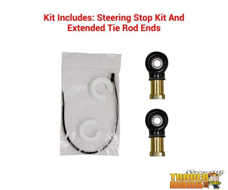SuperATV provides an all-inclusive kit containing Extended Tie Rod Ends ($50 value). As you move your A-Arms forward, you also need to adjust the toe on your steering rack. Don't be fooled by spacer or shock relocation kits, the only way to correctly utilize full thread engagement and maintain factory steering alignment is to use our extended tie rod ends. They are an invaluable feature that also gives you the capability to optimize your alignment after the addition of a lift kit or different suspension. A Steering Stop Kit ($24.95 value) is added as well to prevent over steering which would create unneeded bind on your axles.