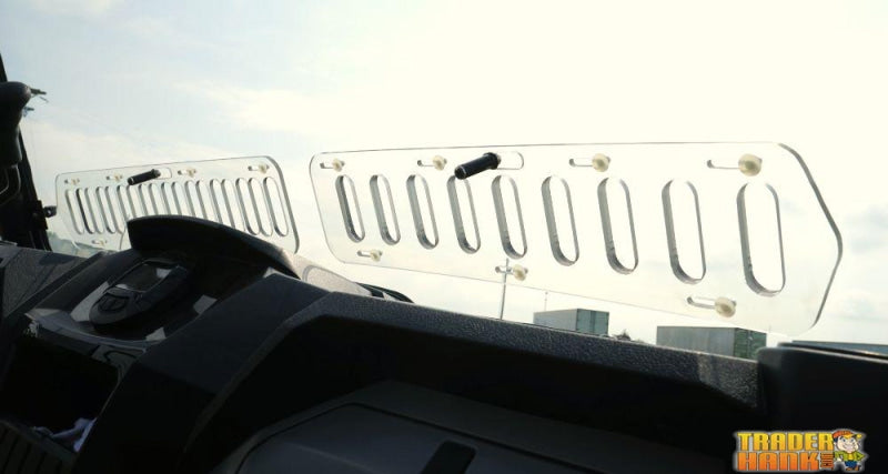 This Made in the USA Aero-Vent polycarbonate windshield is CNC machined using ¼” thick material. Designed specifically for your Textron Prowler Pro. All hardware is stainless steel, aluminum and high-quality nylon to provide long life free of corrosion. The Aero-Vent system has slide panels that allow the user to adjust the airflow into the cab. Just loosen the thumb nut and open completely or anywhere in between. The Aero-Vent system is controlled from within the vehicle so no need to stop and get out in the weather to adjust your windshield.
