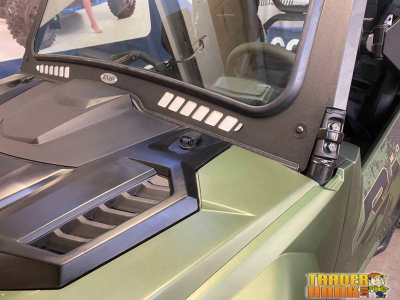 Now, you can add a real laminated safety glass (DOT Approved) windshield to your RMAX or X2 R-Spec 850. The metal frame is laser cut and CNC formed, ensuring a perfect fit. Comes complete with a hand operated wiper and removable vents. Must be used with the factory top pictured.