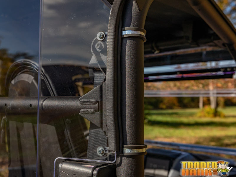 Polycarbonate is the best UTV windshield material because of it’s lightweight yet super-strong properties. It’s 250 times stronger than glass, so there’s no way this thing is breaking under pressure. A light tint keeps UV rays from sneaking into your cab and adds a touch of style to the rear of your machine.